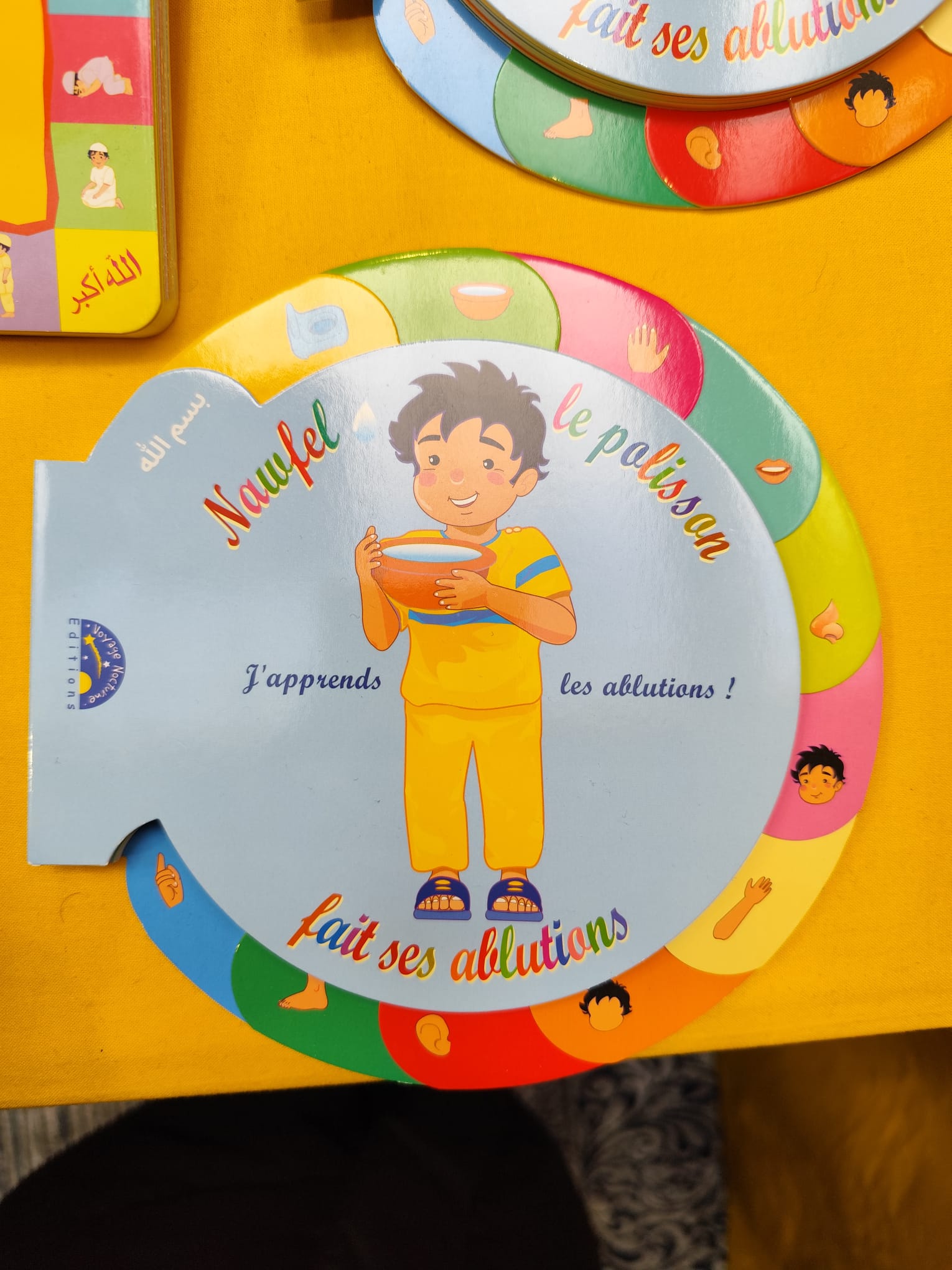 Dans ce livre coloré et amusant, Nawfel, un petit personnage espiègle, apprend à faire ses ablutions — le rituel de purification avant la prière — en imitant et en s’amusant. Le texte en rimes, les illustrations attrayantes et le ton humoristique permettent aux jeunes enfants (2–6 ans) de mémoriser facilement chaque étape du wudu, tout en découvrant l’importance de la pureté dans la pratique religieuse. �